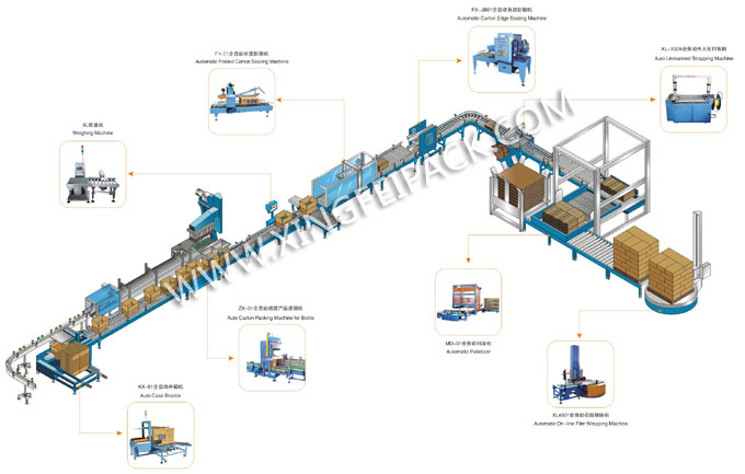 我司可根據(jù)不同產(chǎn)品及要求設(shè)計定制整條紙箱包裝線,從紙箱成型到后面碼垛纏繞膜包裝。適用于瓶裝,袋裝,罐裝等產(chǎn)品。歡迎來信來電咨詢。